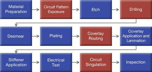 There are several steps in the flexible circuit manufacturing process where laser processing can add value. This series will primarily focus on the laser micromachining processes related to drilling, coverlay cutting, and circuit singulation using general laser micromachining systems. Keep in mind that many of these same principles are also relevant in laser production of rigid boards and even to LDI.
